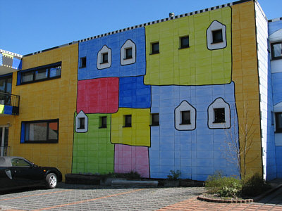 und dann diese bunte hundertwasserähnliche Hauswand ...
