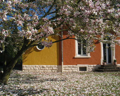 Ein Haus in südländischen Farben, Sonne und diese Magnolie.