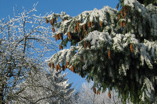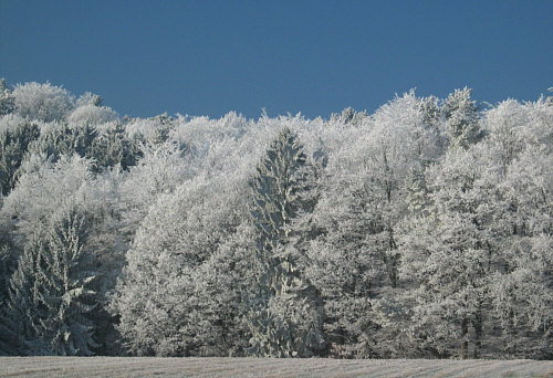 Eine sich auflösende Raureiflandschaft, denn die Sonne kam so langsam.