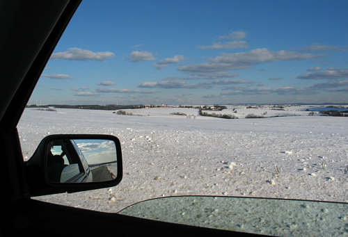Und noch ein Blick vom Auto aus auf die weiße Winterwelt: