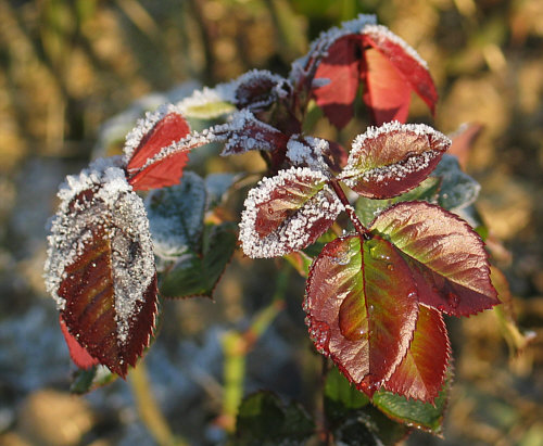 mit Raureif bedeckte Rosen fotografieren kann.