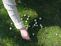 Dann gibts noch die Gänseblümchen, wo Beate die welken Blätter rausgezupft