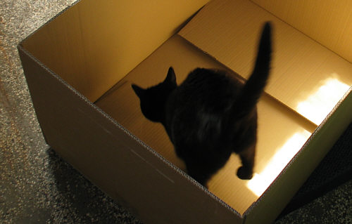 Und dann wird erst mal berochen, was das für ein neuer Karton ist: