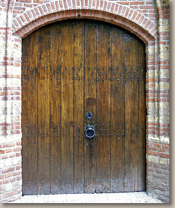 massive Türen zwischen alten Mauern: