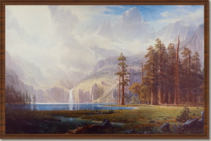 Unberührte Natur. Sanft und mächtig zugleich. Der Bergsee, so klar wie unsere Gedanken. "Garden of Rockies", gemalt von Albert Bierstadt (1830-1902). zum nächsten Bild