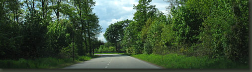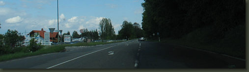 Der Ort ist zu Ende, der Wald steht dunkel an der rechten Seite