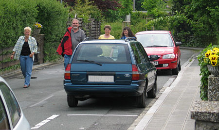 ... um ... vor den weißen Ballons ... auf dem Bild links neben dem Corsa
