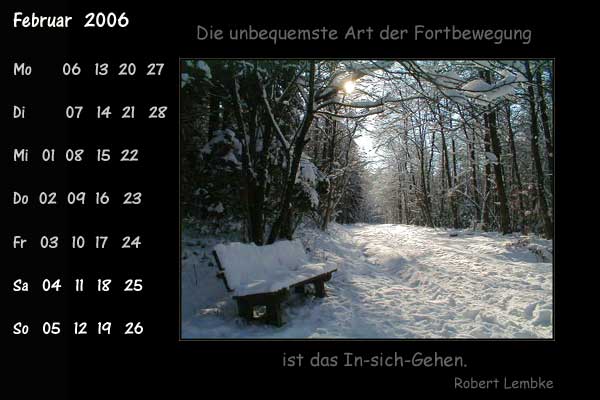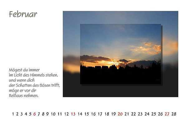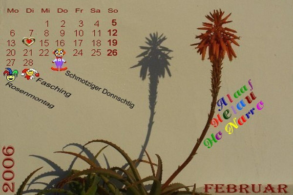 heute genießen wir einfach nur die Kalenderblätter von Aja, Andi, Birgitta, Cekado, Christa, Eckehard, Engelbert, Eva, Falk,