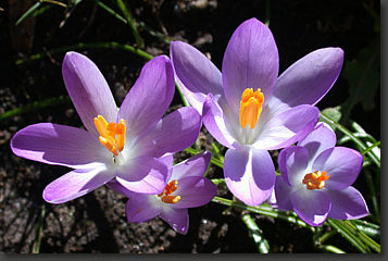 Krokusse und rechts das ein Ranunkelstrauch. Und um den Frühling zu