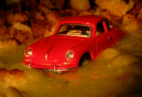 Die Sonne stand tief, als der Porsche im Suppentopf schlief ... jaja.