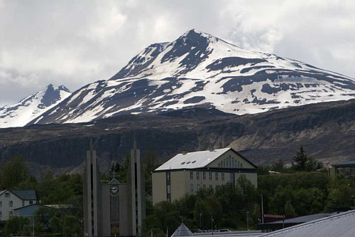 Akureyri liegt in einem Fjord, ist also vom Meer und den Bergen umgeben.