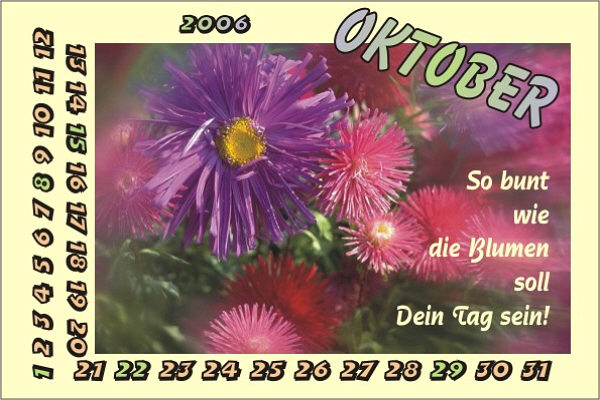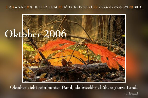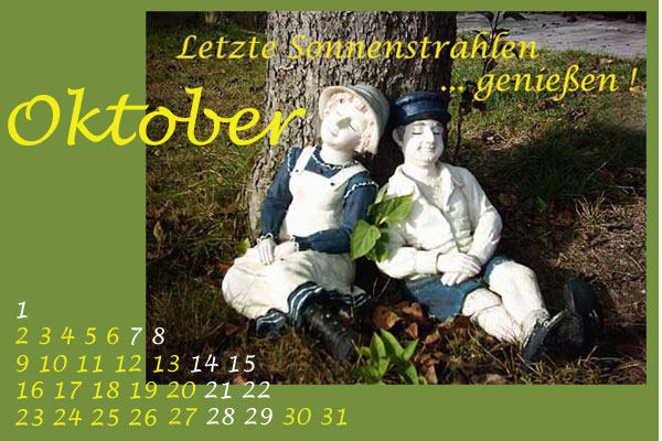 kommen, die von den Seelenfärblern gestalteten Oktober-Kalenderblätter