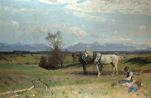 Otto Strützel (1855-1930) - "pflügender Bauer bei der Rast".
