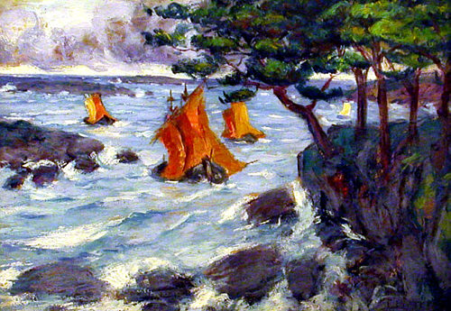 Emil Artur Longen (1885-1936) "Schiffe vor der kroatischen Küste Pula"