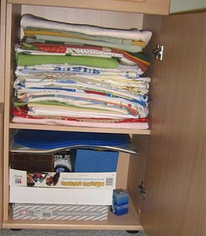 Das dürfte die Tischdeckenabteilung sein ... und unten ... Behältnisse