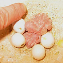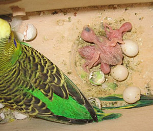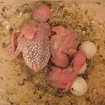 Die Eier, aus denen die Vögel schlüpfen, bleiben im Käfig drin,