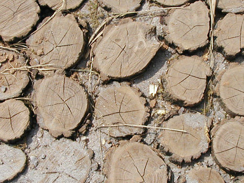 Baumscheiben Ruhepunkt. Wie bei den Spielen, wo man eine bestimmte Stelle erreicht, von der man nicht weggestoßen werden kann. So stehen wir hier und fühlen uns für ein paar Momente sicher. Unter uns die Jahre eines Baumlebens. weiter