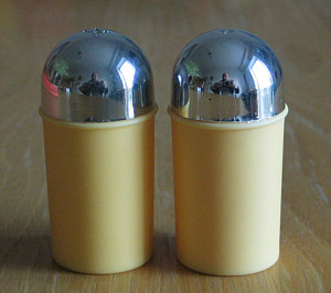 Gesalzen und gepfeffert ins Wochenende :)). Denn es folgen die seelenfärblerischen Salz- und Pfefferstreuer Folge 3 ( Folge 1 - Folge 2 ) -- Nachdem ich ja schon in der ersten Folge unsere eigenen Salz- und Pfefferstreuer vorgestellt hatte, stellte ich kurze Zeit später fest, dass es im Haus noch einige mehr gibt. In Kisten im Keller fanden wir welche. Diesem Pfefferstreuer ... ![]() ... fehlt das Salz-Gegenstück. Das ist "verschütt" gegangen ... *lach*. In den 70er Jahren sah man diese Streuer im passenden Gewürzbord überall. Beate hatte ein solches und ich auch. Heutzutage steht dieser Streuer kurz vor dem Wegwerfen. Ebenfalls im Keller gefunden: ![]() Die sehen größer aus als sie sind ... ziemlich niedlich klein ist die Realität. Gar nicht so einfach zu fotografieren, denn ... ![]() ... da kommt jemand mit Pfoten und setzt sich neben die Streuer. Es kam noch schlimmer *gg*: ![]() Eigentlich sollte das Bild so aussehen ;)): ![]() Diese haben wir "nicht" im Keller gefunden ... sondern die habe ich im Sozialkaufhaus gekauft. Denn ich kann im Moment nicht an Salzstreuern vorbei ... ohne an Seelenfarben zu denken. Und wenn die Streuer dann günstig sind, werden sie kurzerhand gekauft. Diese hier auch: ![]() Ganz billig im großen Supermarkt gesehen, als zeitlos eingeordnet und gekauft. Ich glaub, ich mach noch mal ein Paket für den Lutz ... soviel salzen wir doch gar nicht ;)). Oder ich nehm sie als Zugabe beim Lotto *gg*. Wir haben noch zwei Streuer im Keller gefunden, die behalten wir aber: ![]() Ja, ich weiß, der Fotograf spiegelt sich ;)). -- Nun aber wieder zu den Seelenfärbler-Streuern, sonst stimmt ja die Überschrift gar nicht mehr. Die Reise geht nun ... nicht weit ... nur ein paar Kilometer ... ich könnte fast hin laufen. Wäre allerdings stets den Berg hinauf, so würde ich doch lieber das Auto nehmen *gg*. Dann könnte ich ausgeruht die Kühe besuchen ... genauer gesagt: die Kuhsammlung von Helga R. ... ... und wer Kühe sammelt, hat auch Salz- und Pfefferstreuer: ![]() -- Immer wieder beweisen solche Streuer, wie abwechslungsreich dieses Thema ist. Denn das Bild von Libellchen zeigt einen sehr exotischen Vertreter dieser Küchenutensiliengattung: ![]() Mit Visier, Schwanz und Rollen. Könnte dem Film "Ben Hur" entsprungen sein. Diesen Streuer gabs mal bei einem Kaffeeröster. Man kann ihn aufziehen und über den Tisch fahren lassen. Von wegen "gib mir mal den Streuer rüber" ... da heißt es "zieh mal auf und lass mal rollen". -- Grauer Alltag ? Nicht bei Sonja, denn dort wird farbenfroh gestreut: ![]() Und es gibt da noch welche ... eine ganz besondere Familie: ![]() Die beiden kleinen Hühner salzen und pfeffern ... und was macht das große Huhn ?? Das zuckt ... ähm ... "zuckert" meine ich natürlich ;)). Sind übrigens Fingernagelmörderhühner ... zumindest, wenn man sie nachfüllen will: ![]() Oder gehen die leicht auf (ich kanns eher nicht glauben) ? -- Streuer für die moderne Küche in aktueller Alu-Optik findet man bei Denise: ![]() So was würde bestimmt auch dem Herrn Lafer gefallen ;). -- Wer jetzt glaubt, er hätte ziemlich alle Streu-Varianten gesehen ... niedliche Tiere, kühle Eleganz, praktischer Minimalismus, verzierte Nostalgie, humorvolle Ideen ... der stellt gleich fest, dass es nichts gibt, was es nicht gibt. Denn die Handschmeichlerstreuer fehlen noch: ![]() Bildermäusel ist es, die diese Streuer zärtlich berühren darf. Warum fällt mir gerade der Name "Colani" ein ? ;)) -- Bei der Ruth leben alt und neu harmonisch beieinander ... zuerst die älteren Vertreter: ![]() Die Mühle für die große Umdrehung ... beides in rustikalem Holz. Oder ebenfalls schon älter, aber klassisch elegant in Porzellan: ![]() Ganz neu (hat Ruths Mann zu Weihnachten geschenkt bekommen) ist dieser Kombi-Streuer: ![]() -- Das Huhn legt ein Ei, manchmal auch zwei auf das Ei gehört Salz Gott erhalts ... ... oder so ;)). Gedichtet zu Ehren von Sabines Streuern: ![]() -- Wenn dein Schiff fade in seichten Gewässern plätschert, dann wird es Zeit für den Leuchtturm, der dir den Weg zur Würze zeigt: ![]() Rot und weiß geringelt stehen sie beim Jürgen in der Küche ... ... und freuen sich immer, wenn sie gespült werden. Wasser ... endlich Wasser ... *gg*. Zwei weitere Folgen wirds noch geben und ich kann Euch sagen, auch da werden wieder ganz tolle Exemplare dabei sein :)). |