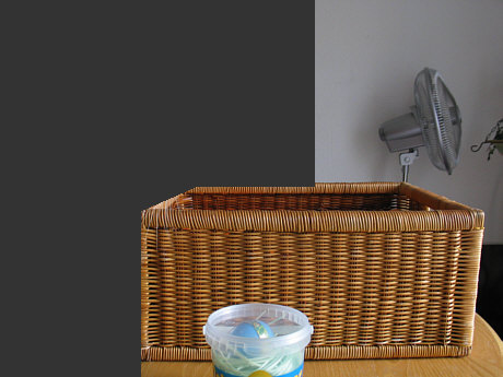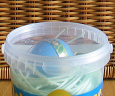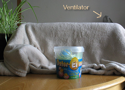 Sagt doch bitte mal alle "da steht ja ein Ventilator". ![]() Dankeschön. Das wäre nun gesagt und muss nie wiederholt werden. Denn dort, wo ich fotografiert habe, steht hinten an der Wand ein Ventilator. Für den Sommer. Steht er da. Weil ... er eben da steht. Da ich keine Lust habe, ihn immer wegzuretuschieren, steht er nun auch sichtbar da. Jetzt an Ostern ist er ausgeschaltet. Weil Ostern diesmal wie Weihnachten ist. Vor dem Ventilator steht ein Tisch. Auf dem Tisch da steht ein Korb. ![]() Da fehlt jetzt noch eine Decke. Denn der Korb mit der Decke drauf soll der fotografische Hintergrund sein. Hintergrund für eine etwas satirische, seltsame, blaue Osterüberraschung. Denn ich hab da etwas gekauft. Extra fürs Kalenderblatt. Alles im Eimer. ![]() Und was da genau drin ist, das schauen wir uns gleich mal genauer an. Der Eimer. Der Korb. Der Ventilator ...
