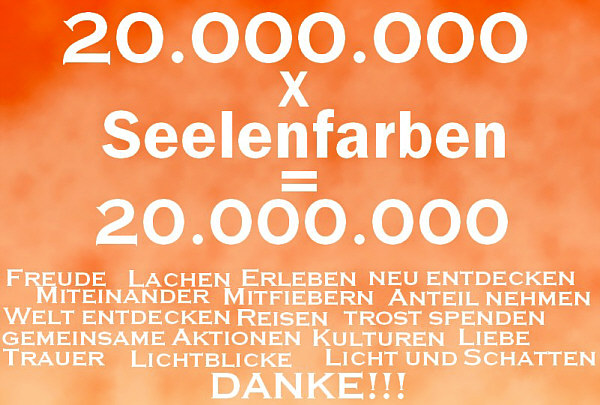 Florian hat mir eine Grafik geschickt: ![]() Vielen lieben Dank !! Aber bitte keine weiteren Grafiken schicken ... ich weiß ... wenn ich dazu aufgerufen hätte, dann wäre mein Postfach sehr voll geworden. Ich möchte diese Grafik einfach stellvertretend für all Eure positiven Gedanken hier veröffentlichen :)). |