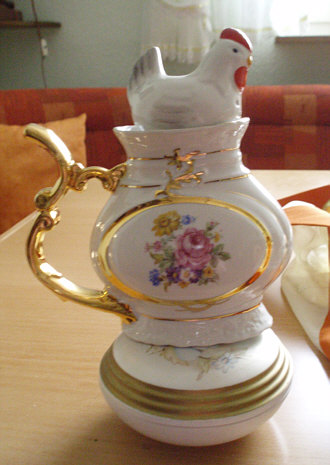 EM-Maskottchen, Spardose und im silbernen Haus ruht