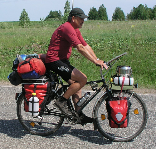 Hermes und seine Mitfahrerin fahren im Jahre 2005 mit dem Fahrrad vom