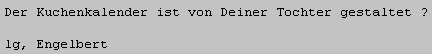 Wie bei Dagmar, ihrer Tochter und dem Kuchenkalender, dessen Deckblatt