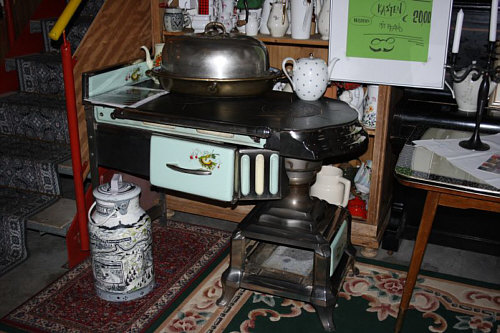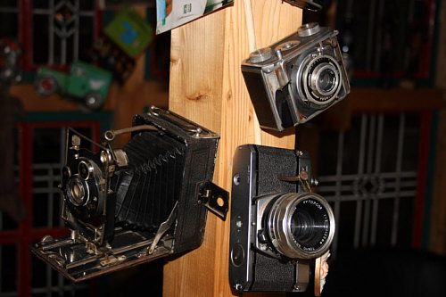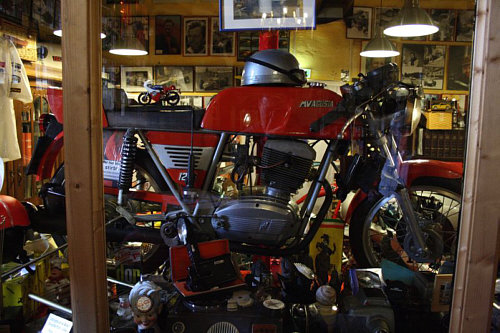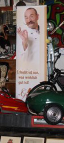 so etwas ? Warum hängt man sich neben alte Motorräder und Kaffeekannen