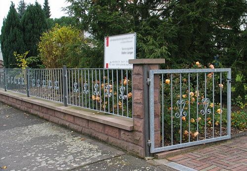 Ein normaler Zaun, das Schild eines Steuerberatungsvereins, Pflaster,