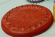 Ist man mit dem Faden wieder am ersten Stift angekommen, wird wieder ein
