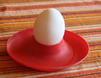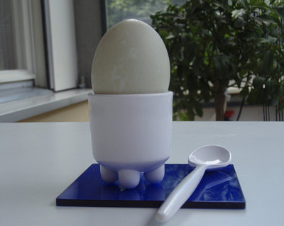 und hat deswegen ein Deko-Ei auf den glänzenden Eierbecher gelegt.