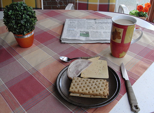 Und die Zeitung ... damit man weiß, warum man gestärkt in den Tag muss.
