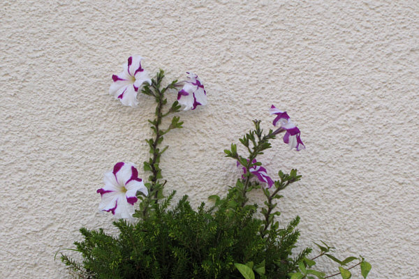 Weiße Wand wird durch Blumen schöner.