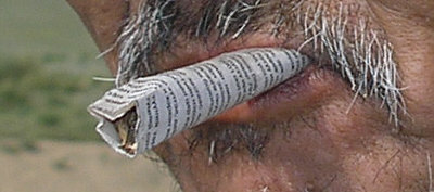 ... der sich doch tatsächlich eine Zigarette mit Zeitungspapier gerollt