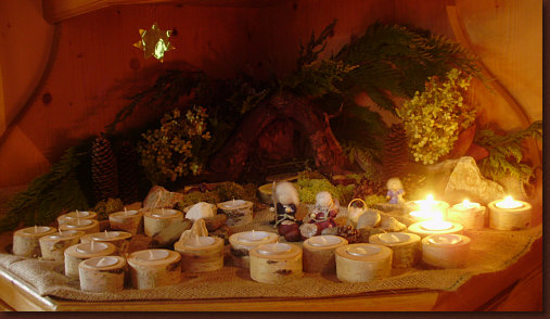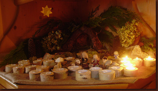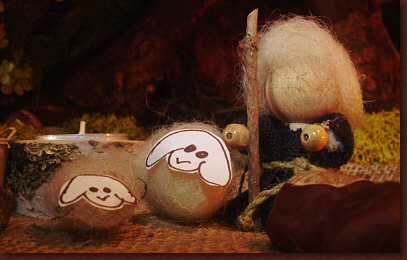 Und genau diese Straße zum Licht finden wir auch in Marias Krippe. Gestern 5 Lichter ... und heute kommt ein weiteres dazu: Ab sofort ist die kleine Katze nicht mehr das einzige Tier, denn nun machen sich auch ... ... zwei Schafe auf den Weg. weiter