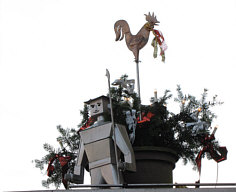 Foto-Spaziergang Teil 2 Wir stehen noch immer in dieser Straße ... ![]() ... und gerade eben erblickten wir die Roboterkunst: ![]() Wisst Ihr, wo der Roboter hinschaut ? Zu Kurt ... ![]() ... der mitten in seinem "hier kommt Kurt ..." ermattete ... und nun verhungert an der Hauswand hängt, aber noch die Geschenke auf dem Rücken hat. Ich glaube, er hat sich auch noch die Beine gebrochen *fg*. Ein großer roter Farbpunkt mitten im Winter ... ebenfalls rot, aber viel dezenter sind diese kleinen roten Punkte: ![]() Neben der Mülltonne namens Otto tanzen kleine rote Beeren ... ![]() ... namens Olga, Ottilie, Ofretete und andere O-Beeren die "lustig hängt man da rum"-Polka. Doch, doch, die haben alle Namen, die mit O anfangen ... so ist das Tradition bei Beeren, die man am zweiten Weihnachtstag fotografiert. Jaja ... iss ja schon gut ... wieder ernst werden ... und endlich abbiegen ... ![]() ... in Richtung Kirche (deren Bild in Folge 1 zu sehen war). Wenige Schritte weiter begegnet uns ... Kunst ... ![]() ... sowas hatte ich noch selten gesehen ... bemerkenswert ... denn die meisten Dekorationen an Hauswänden sind ja gemalt und nicht mit 3-D-Effekt erschaffen. Konnte leider nicht direkt von vorne fotografieren ... aber ich konnte den Herrn, der daneben stand, fragen, ob er das gemacht hat undsoweiter ... er antwortete mit ... ... "hello" ... und die weitere pfälzisch-englische Konversation brachte kein Licht ins Künstlerdunkel ... er war nur der Mieter und die Vögel waren schon immer da und mehr könne er mir leider nicht sagen, aber wenn ich die Nummer vom Vermieter haben wollte ... undsoweiter. Nee, ich wollte die Nummer nicht ... und jetzt muss ich mal kurz aufhören mit dem Reden ... es geht bergauf, wir sind auf dem Weg zur Kirche. Erst oben wird mein Schnaufen leiser und mein Finger am Abzug wieder aktiv: ![]() Eines der vielen Häuser Gottes ... aber der alte Herr macht gerade Verwandtschaftsbesuche, denn die Kirche ist geschlossen. An drei Türen gerüttelt und es tat sich keine Pforte auf. Oder wohnt er ... ![]() ... in dem kleinen Haus neben der Kirche. Gehn wir doch mal näher ... ![]() ... und suchen, ob wir ein Klingelschild finden. Aaah .. oooh .. da ist ja eines ... hier wohnt er nicht, der liebe Gott. Denn hier wohnt ... ![]() ... der Bischoff. Aber der ist auch grad nicht da ... wahrscheinlich in der Kneipe oder so. Nee, Leute ... ich bin grad zu unernst für diesen ernsten Feiertagsspaziergang. Ich bin doch in der Umgebung des Herrn und da muss man gesittet sein ... und schreiben. Darum mache ich die nächste Pause ... finde meine Seriosität wieder ... ... oder was meinst du, mein Herr ? Stimme von oben: "Hallo, mein Sohn ... was machst du dir nur für unnötige Gedanken ... hey, ich selbst hab dir doch den Humor gegeben ... willste den jetzt verlieren, nur weil du ein Klingelschild nicht von einer Kneipenwerbung unterscheiden kannst ? Aber nebenbei: als du vor der Kirche standest, war ich nicht da, weil der Bischoff mich gerade besucht hatte ... wir saßen zusammen bei ...wein und spielten gerade Hal... ". Leider konnte ich nicht genau hören, was die beiden spielen ... lass es bitte nicht "Halma" sein ... denn das könnte ich nicht glauben *gg*. Und ... bitte ... lass es auch nicht Glühwein sein ... denn dann war das der Teufel, den ich gerade gehört hab ;)). [ wir laufen bald weiter ] |