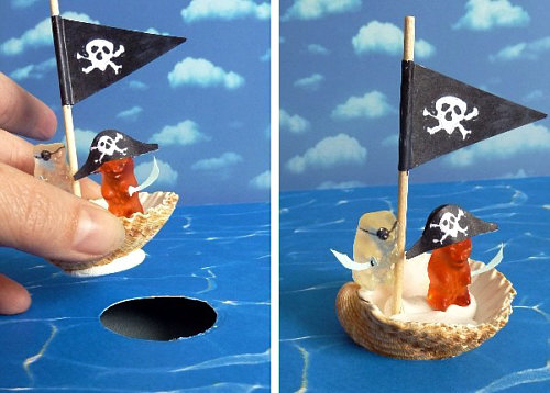 Auwei ... Kampf ... mit Schwertern und Totenköpfen ... ... aber sowas muss ja vorbereitet werden. Wir brauchen bedruckte Pappen Papier eine Muschel 1 Stäbchen ![]() Und dann noch Schere Kleber Stift Nun wir ein Streifen Pappe als Abstandshalter auf die Wolkenpappe geklebt ... darauf dann die Felsen. ![]() Dann gehts los ... an die Stäbchen wird eine Totenkopfflagge geklebt, in die andere Pappe ein rundes Loch geschnitten, damit das Boot auch im Wasser schwimmt. Flagge, Hut und Augenbinde wurde mit einem Stift gemalt. ![]() Schwerter kriegen die Piraten natürlich auch. Aber nicht nur die, sondern die auf den Felsen auch ... ... und dann kann das Säbelrasseln auch schon beginnen: ![]() Oder ist das gar nicht Freund und Feind, sondern auf den Felsen steht die Besatzung, die mit dem Beiboot zum Piratenschiff gebracht wird ? Man weiß es nicht ... aber ich könnte ja mal die Bettina F. fragen, denn die hat hier geschnitten, geklebt, gedacht, fotografiert. Ha ... ich weiß es ... das sind alles Freunde ... denn ich habe gerade den Feind gesehen ... |