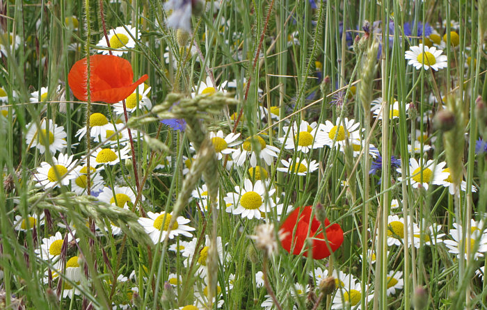 hier im Kornblumen/Mohn/Kamille-Feld noch nicht.
