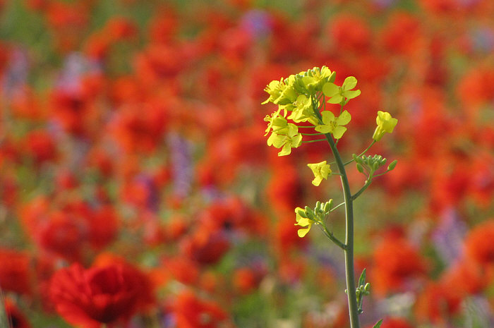Eine einzige Rapsblüte hatte sich übrigens ins Mohnfeld verirrt