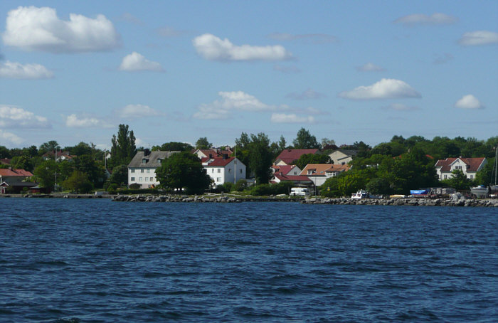 ... und schauen gerade zurück zur Insel ... das ist der Ort Farösund,