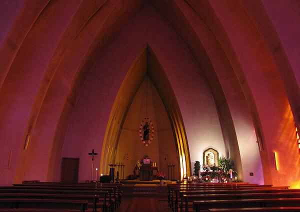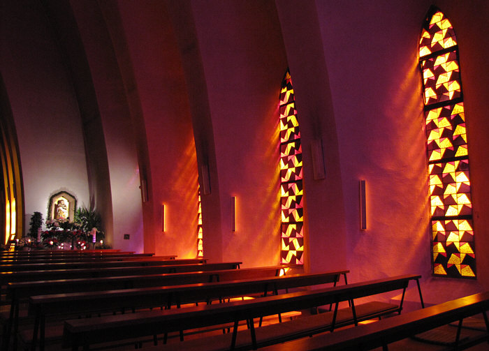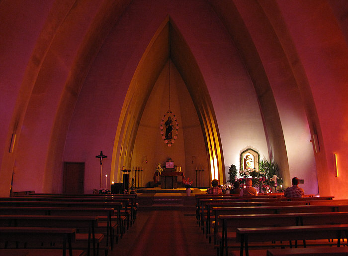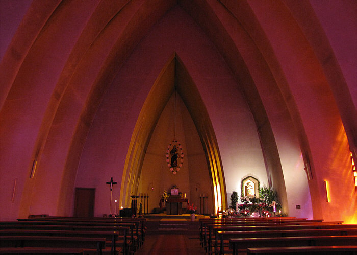 1950-52 wurde eine neue Kirche erbaut ... vom Umriss her ähnlich