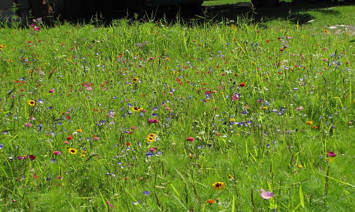 Es ist in dieser Blumenwiese kaum möglich, eine Blüte vor nur Grün zu