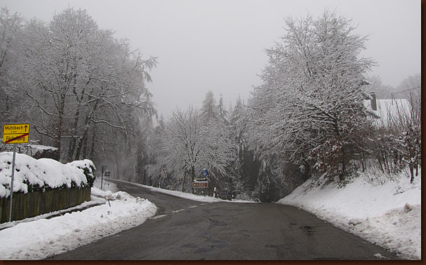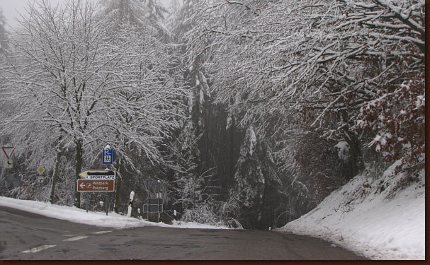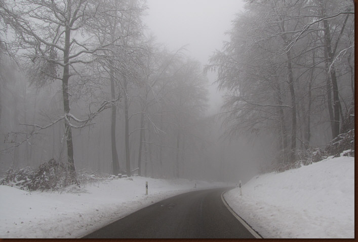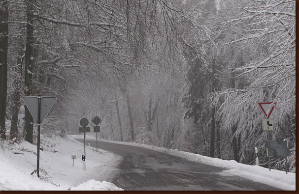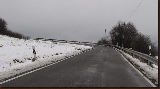 Und glatt ... die Straße hat durchaus eine winterliche Oberfläche.