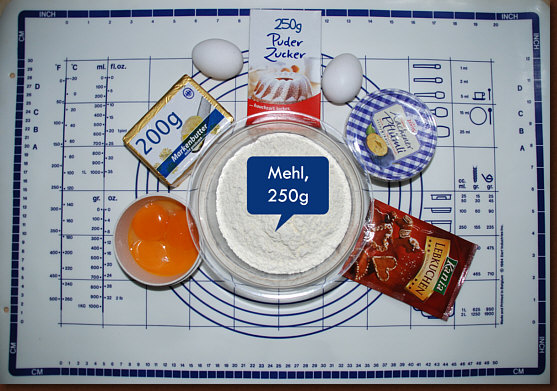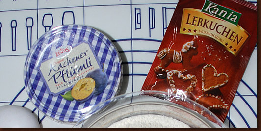 Das Zutatenbild für die nächste Plätzchensorte ist ja sehr interessant ... das dreh ich doch mal eben ... ... und das ist ja spannend ... Pflümli und Lebkuchengewürz. Was das wohl für eine Plätzchensorte sein mag ? weiter