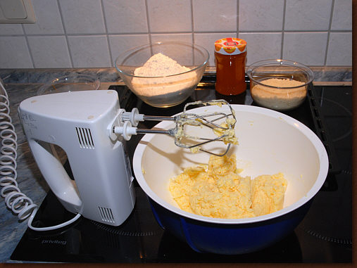 3/4 Pfd. (375 Gramm) Butter wird schaumig gerührt ...