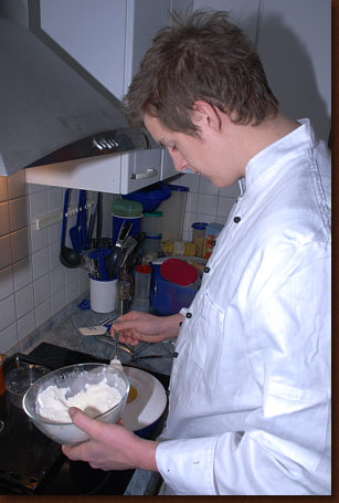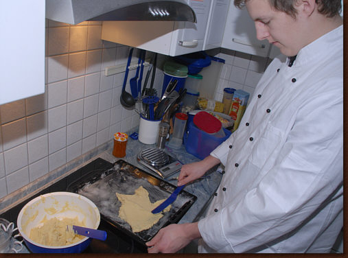 ... rollt die Hälfte der Masse zu 1/2 cm dickem Kuchen ...