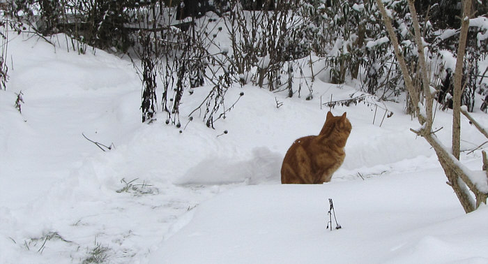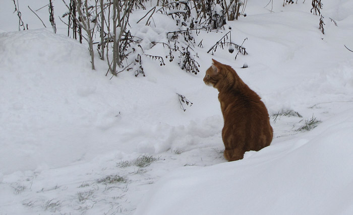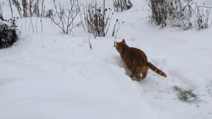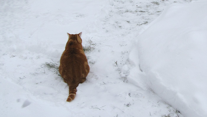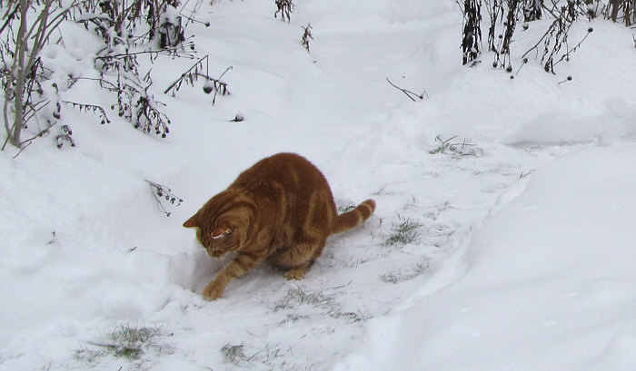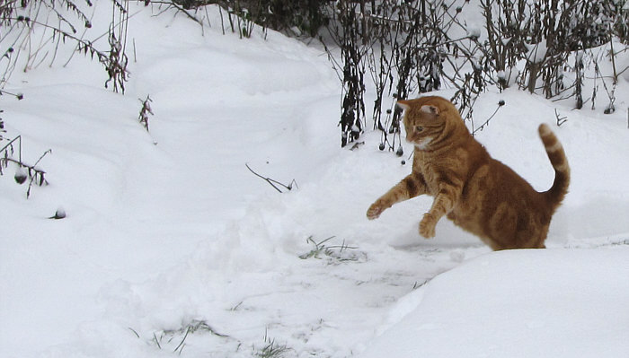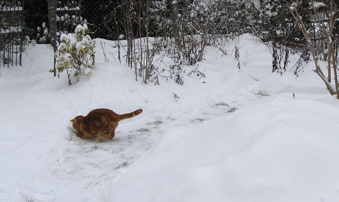 ... und es dann mit der Pfote anzustoßen, um zu sehen, ob der Schnee