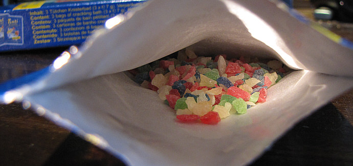 ... und wenn man das ins Badewasser schüttet, wirds laut.