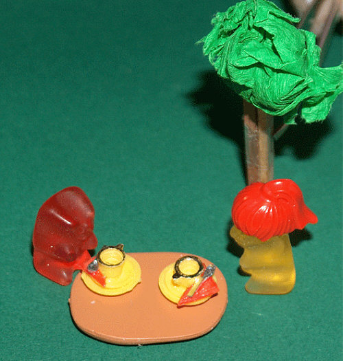 Im Bärenkino ... es läuft der Film Frühstück bei Tiffany Die Geschichte des Films ist schnell erzählt ... ist nämlich ein Kurzfilm: Tiff sitzt mit seiner Lilalaunelesebrille an seinem Schreibtisch und dichtet ... ![]() ... derweil Any sich schon mal schön für ihn macht. ![]() Denn die beiden haben sich per Zeitungsanzeige kennen gelernt und das ist nun ihr erstes Treffen. Tiff dichtet einen solch erotischen Text, dass er dabei rot wird ... ... und eine halbe Stunde später frühstücken die Beiden: ![]() Es ist ein Frühstück im Park ... Frühstück bei Tiffany: ![]() Nach dem Frühstück liest Tiff Any sein Gedicht vor, geht dann mit ihr zum Strand, findet eine Schatzkiste ... ![]() ... und in der Kiste zwei Verlobungsringe. Happy End, die Kinobesucher nässen ihre Taschentücher. Regisseurin: Genevieve Requisite: Arthéna, Tochter von Genevieve ... Das waren heute Gerdas Bären mit Katze, Gudrun Sportbären, Urlaub bei Heidi und Heike und gerade eben waren wir im Film von Genevieve. |