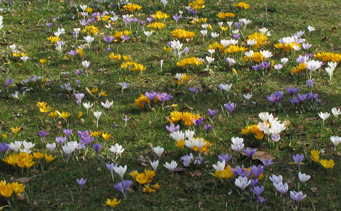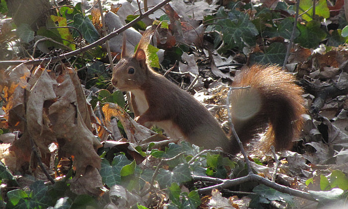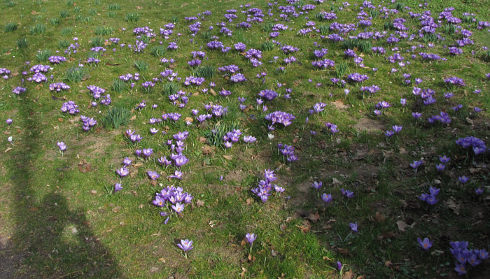 ![]() Folge 6 Unterwegs in Landau Im Goethepark waren wir ... im südlichen Teil ... dort, wo die Krokusse mit den kleinen gelben Narzissen tanzen und die Schneeglöckchen Beifall klatschen. ![]() Ein paar Meter weiter finden wir ein weiteres Blümchen, von dessen Sorte wir bisher noch nix gesehen haben ... ein Blausternchen: ![]() Und ein einzelnes, aber bestimmt nicht einsames gelbes Blümchen gibts hier auch: ![]() Wir gehen nun rüber in den nahen Savoyenpark ... eigentlich gehören diese beiden Parks so gut wie zusammen und der Savoyenpark ist eh ziemlich klein. Aber hier lernen wir etwas ... nämlich "wenns raschelt, ists keine Blume" Sondern ... ![]() ... ein Eichhörnchen. Der Schwanz ist einfarbig braun, dass sieht durch ein Blatt oder Ast im Vordergrund nur so aus, als wäre da ein heller Teil ... und natürlich war das Hörnchen auf Essenssuche. "I am rascheling for Lunch" ... oder so ;)). Sieht auch fast so aus, als würde es staunen. Vielleicht über den Baum da vorne. Denn ... es war einmal ein Baum, der hatte nur einen Wunsch. Ganz sehnlich wünschte er sich, schon im März grüne Blätter zu tragen. Doch wie sehr er sich auch anstrengte, es wollten ihm einfach keine Blätter wachsen. Voller Verzweiflung fragte der Baum ein vorbeihuschendes Eichhörnchen "was kann ich denn tun, damit ich schon im März grüne" ... und das Tier antwortete "du kannst nichts tun ... aber ich". Wenige Minuten später kam das Eichhörnchen zurück, ließ ein paar Efeusamen fallen und verschwand wieder. Das war vor vielen Jahren. Und so sieht der Baum heute aus: ![]() Und dann hat der Baum auch noch eine tolle Aussicht ... ![]() ... doch das schönste Bild von den Krokussen hat das kleine Eichhörnchen, wenn es mal nicht rennt, sondern anhält: ![]() Ein paar Sekunden später kommt sogar Leben ins Bild: ![]() Das ist ein Zufallsbild ... und nun kommt ein geplantes Bild ... ![]() ... das ich deswegen fotografiert habe, weil hier mal Krokusse neben Blausternchen blühen ... eine besondere Kombination. Was gibts sonst noch in diesem Park ? Eine lila Wiese ... ![]() ... und ein Fotograf, der Schatten wirft ... "sei nicht der Schatten, wirf ihn" ;)). Über diesen Satz meditieren wir noch einen Tag, denn ich hab grad entschieden, dass der Spaziergang durch Landau um einen Tag länger wird ... morgen gehts also weiter. Heute, das war Folge 6 mit blauen Sternchen, braunen Hörnchen, grünem Efeu und schattigem Fotografen ;). |